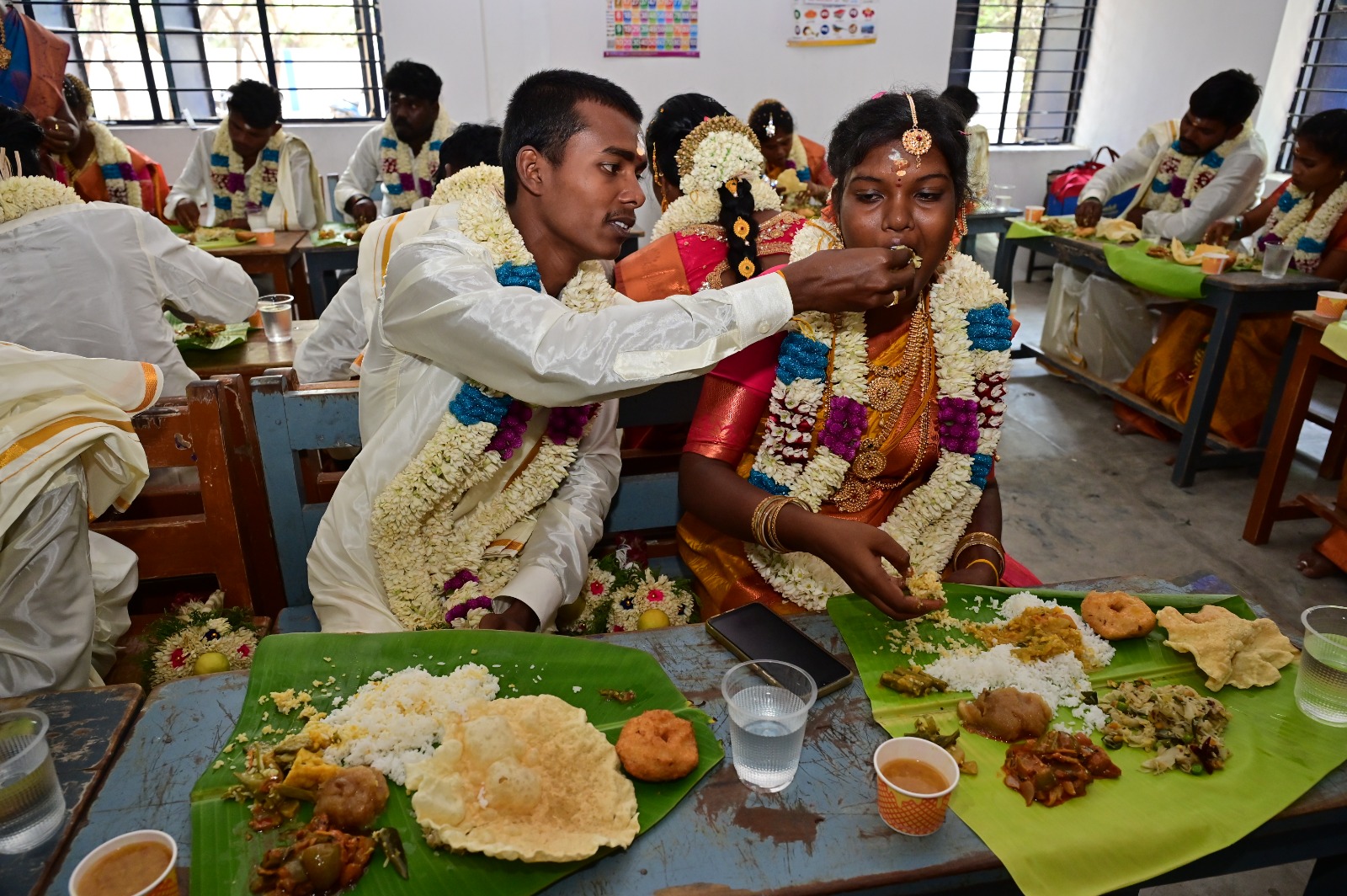 In molte comunità rurali, diverse giovani donne e uomini rimangono celibi anche dopo aver raggiunto l'età del matrimonio a causa di vincoli socio-economici. Questi includono fattori come le aspettative di dote, l'estrema povertà, le disabilità fisiche o l'assenza di supporto genitoriale. Riconoscendo queste sfide, le Federazioni dei Gruppi di Auto-Aiuto Femminile supportate dall'ASSEFA individuano spose e sposi idonei, indipendentemente dalla casta o dalla religione, e facilitano i loro matrimoni attraverso cerimonie nuziali di massa organizzate dalla comunità.